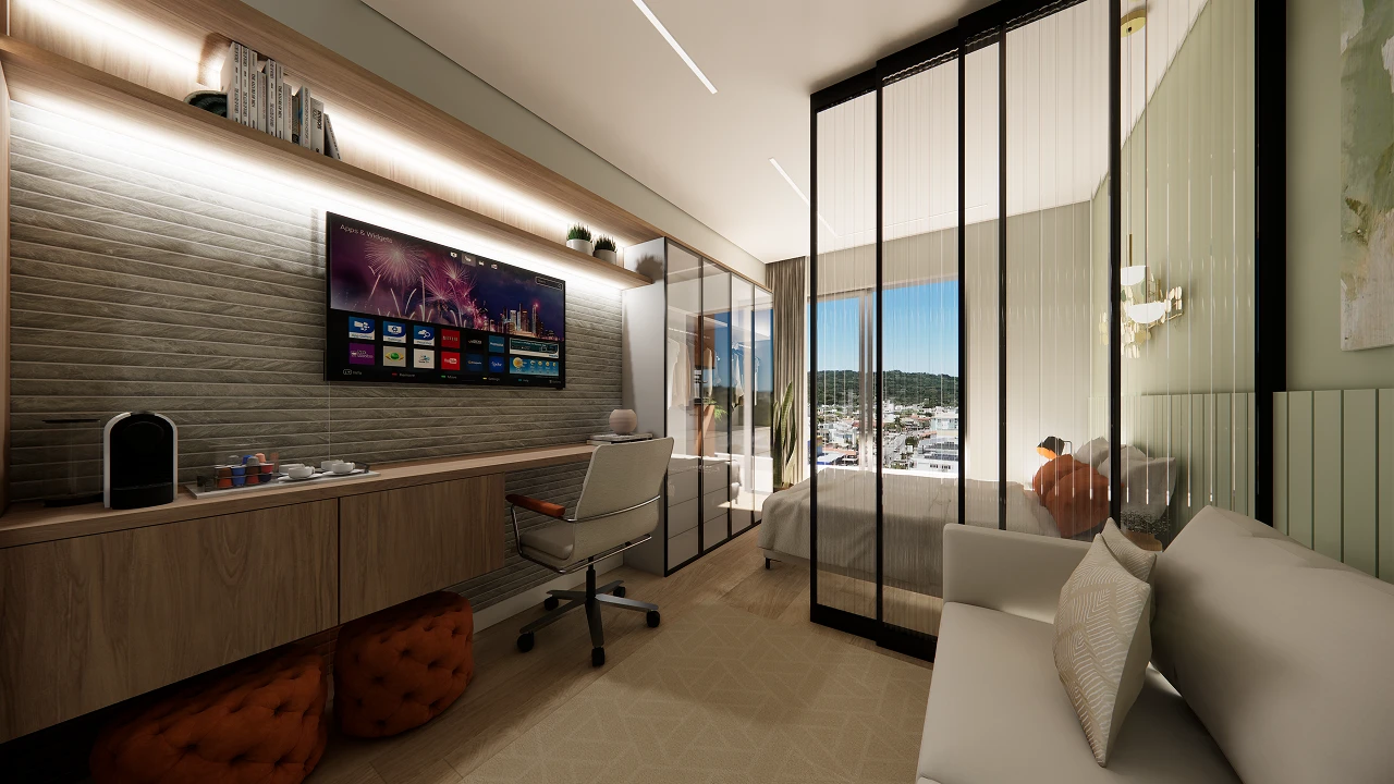 Studios e apartamentos com design autoral na Cachoeira do Bom Jesus.